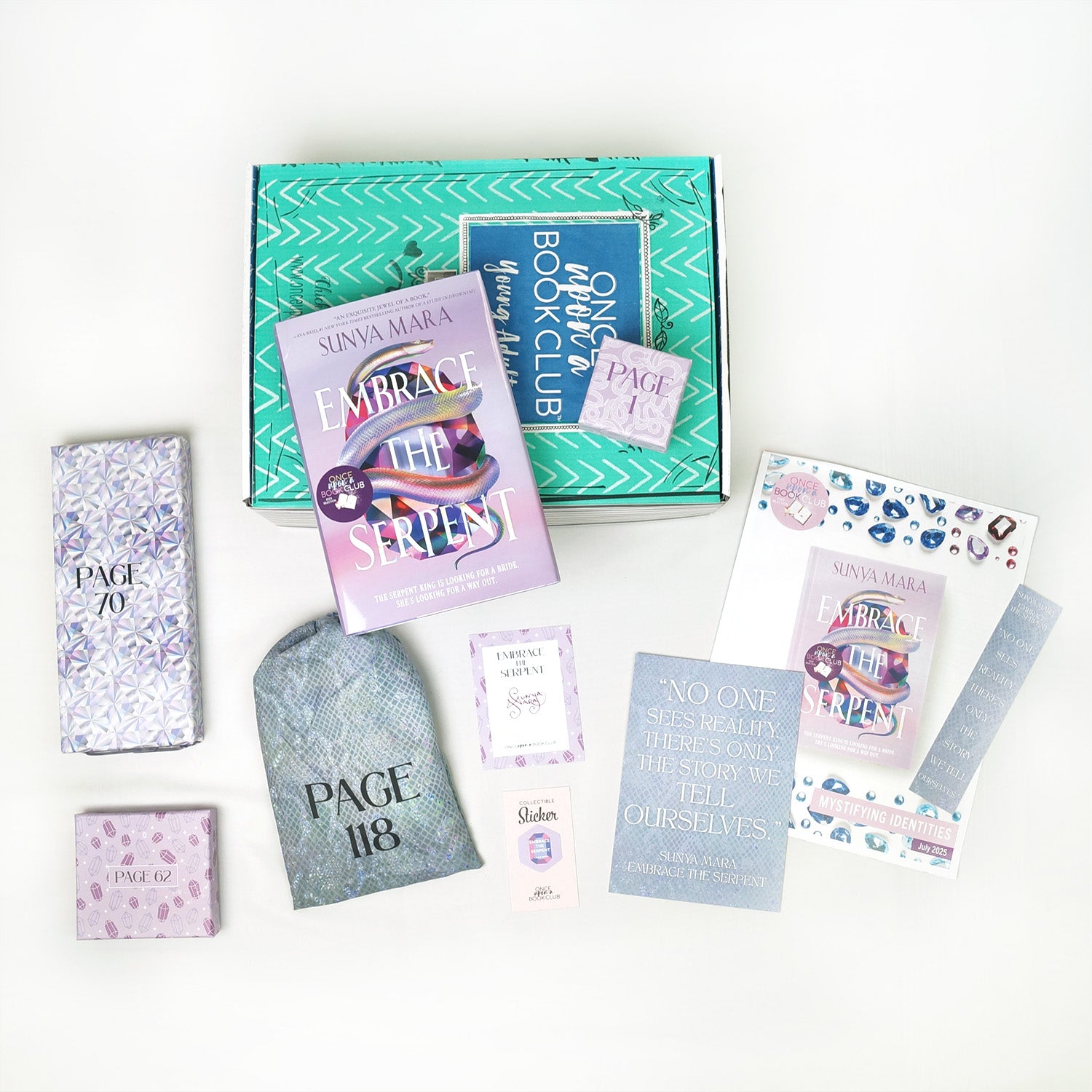 Experience the July 2025 Young Adult box themed, Mystifying Identities featuring Embrace the Serpent by Sunya Mara.