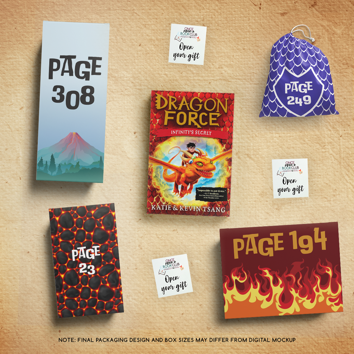 This month's box will feature a new copy of Dragon Force: Infinity's Secret by Katie and Kevin Tsang, a signed bookplate from the author, plus FOUR gifts that bring this magical adventure to life!